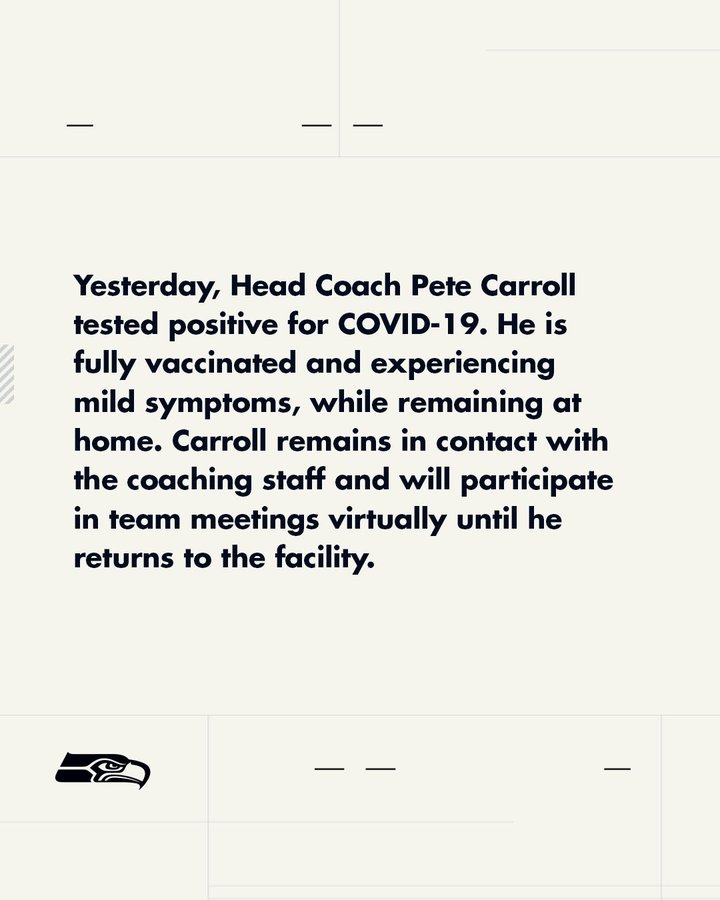 Seattle Seahawks Head Coach Pete Carroll Tests Positive For Covid Field Gulls